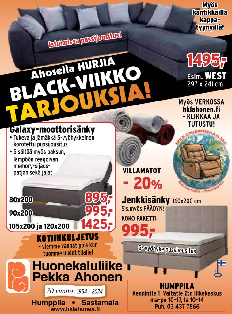 Huonekaluliike Pekka Ahonen Oy: Humppila - Sastamala.