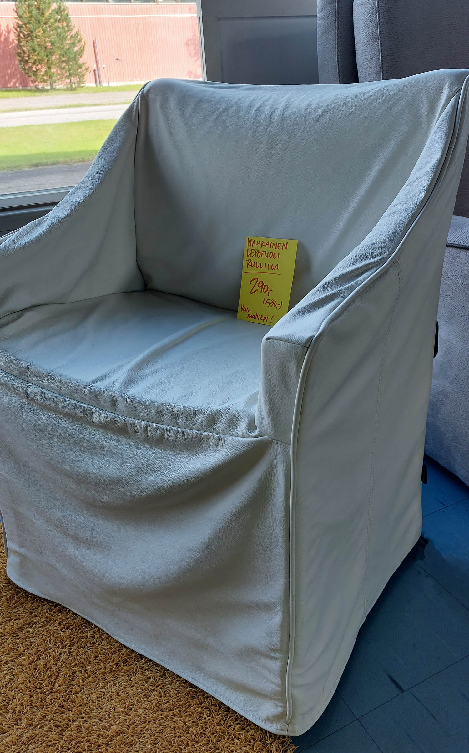 Nahkaverhoiltu lepotuoli rullilla!
