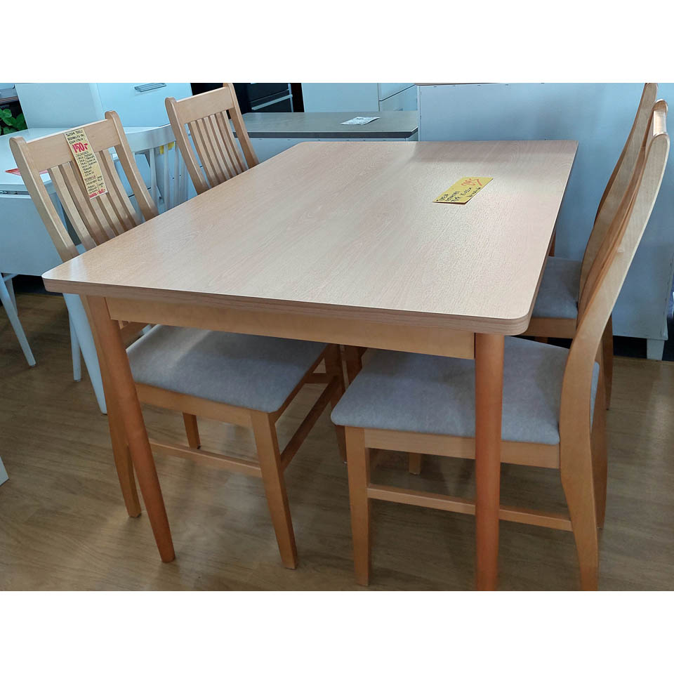 Koko näyttävä kokonaisuus, pöytä + 6 tuolia: 2 999,00 €.