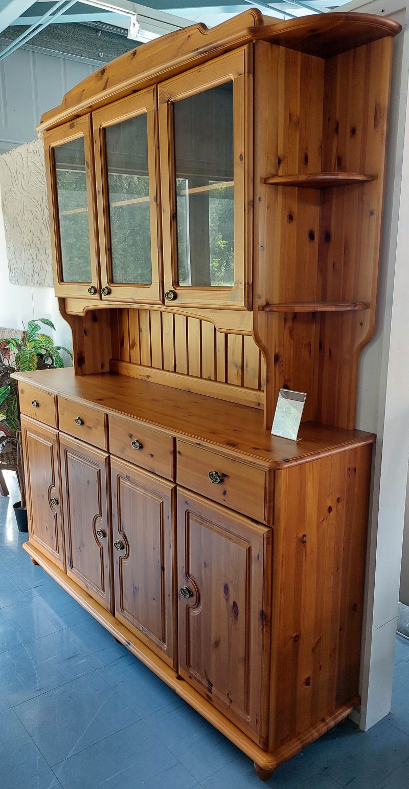 Tämä upea massiivimäntyinen emännänkaappi on todellinen katseenvangitsija, joka yhdistää perinteisen puutyötaidon ja käytännöllisyyden. Massiivipuun lämmin sävy ja luonnollinen kauneus tuovat kotiin ainutlaatuista tunnelmaa.